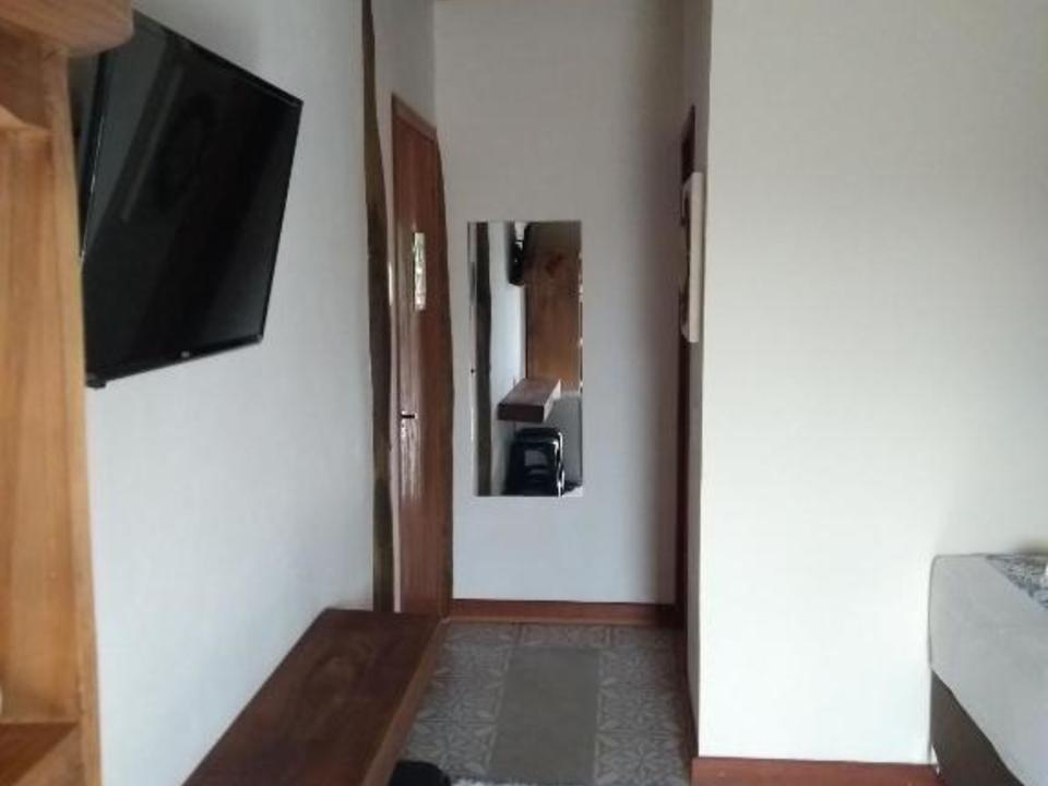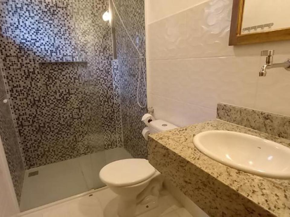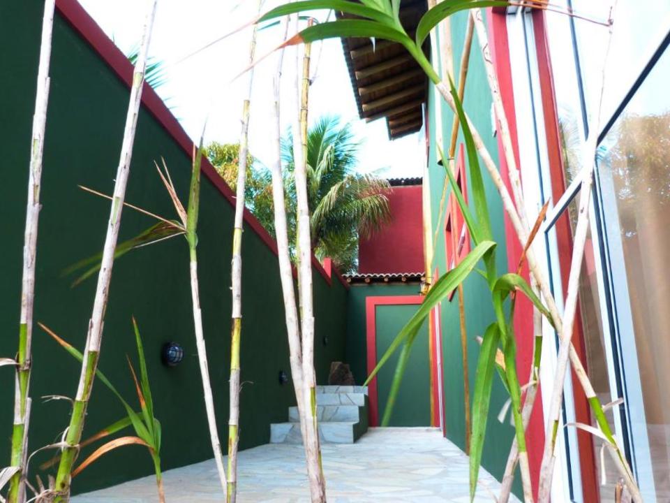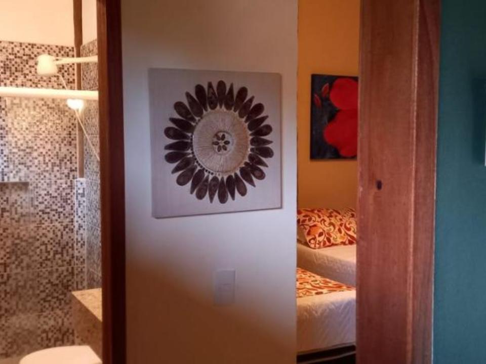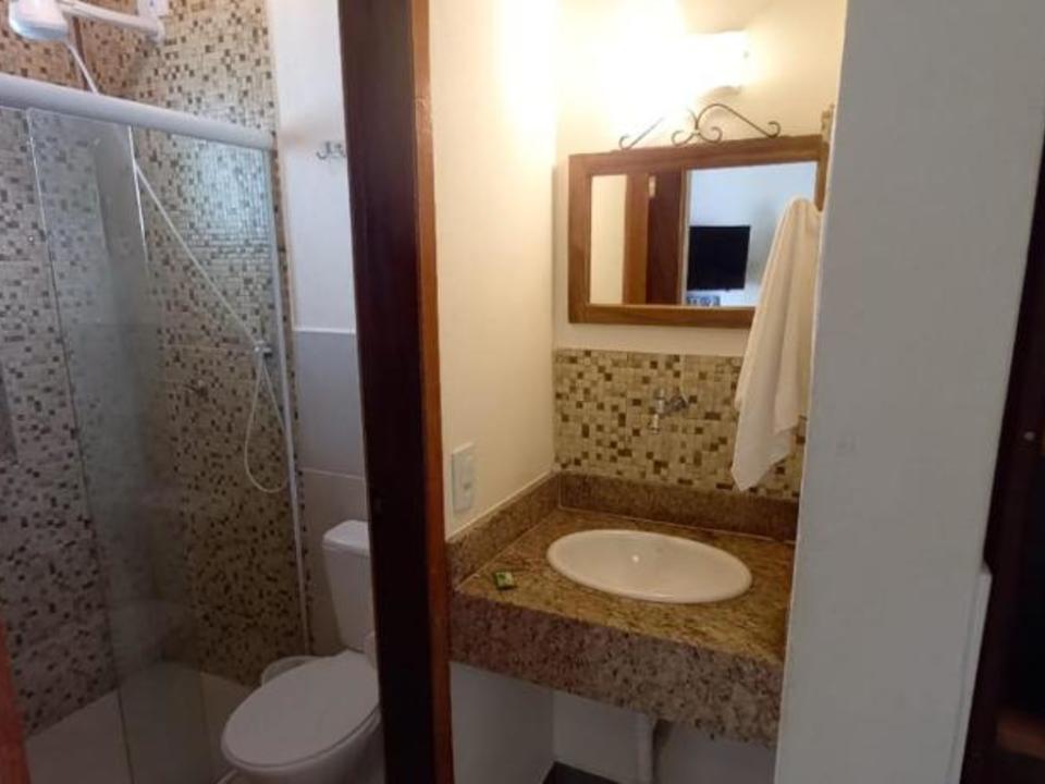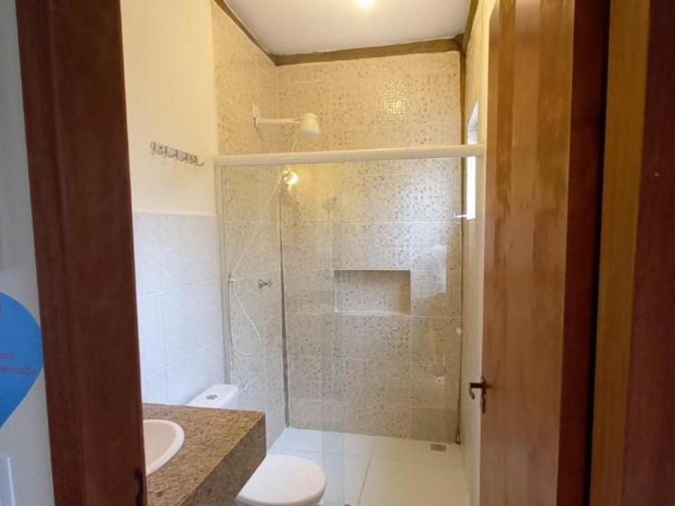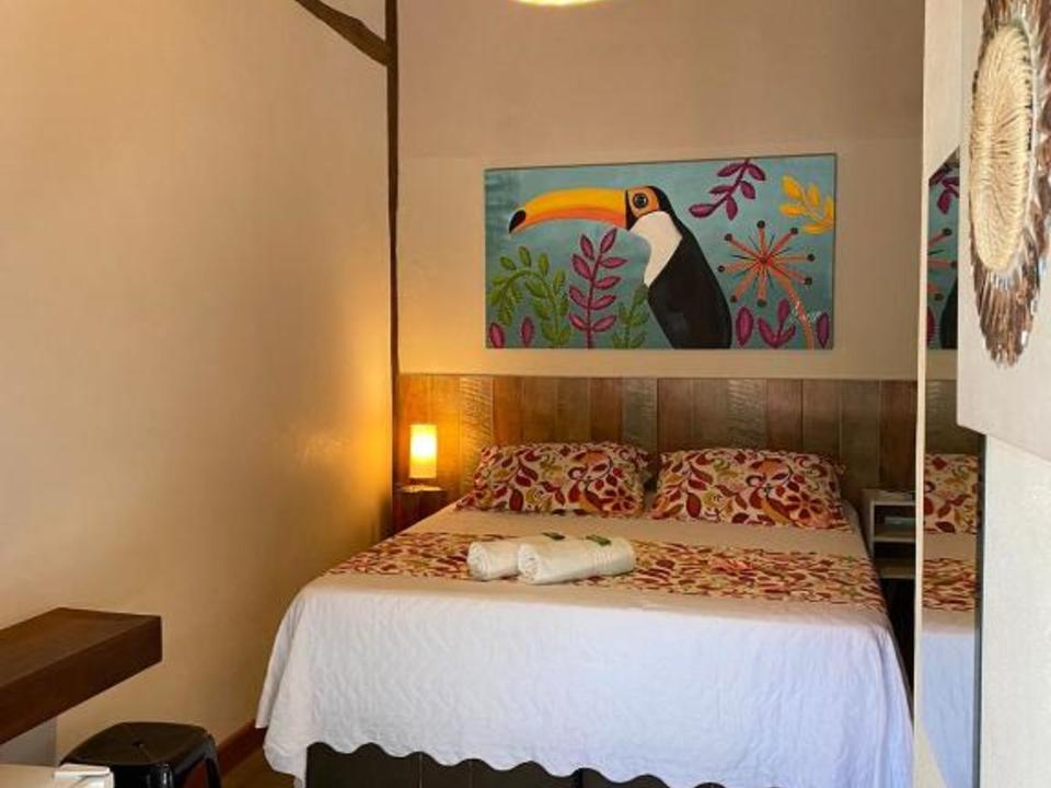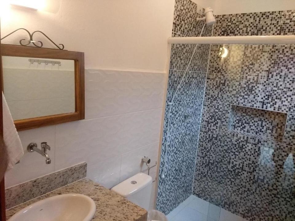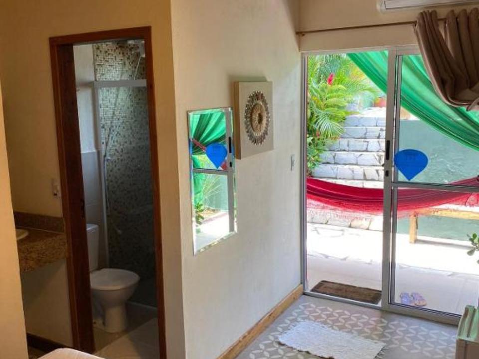 Suíte no piso superior com varanda, o destaque desta suíte é o teto todo de madeira com o pé direito alto e uma linda vista para a piscina. Suíte com 1 cama de casal Queen Size e 1 cama de solteiro. A suíte está equipada com Ar condicionado Split, Armário, Frigobar, Tv led e Varal. A suíte foi projetada para acomodar até 3 hóspedes.